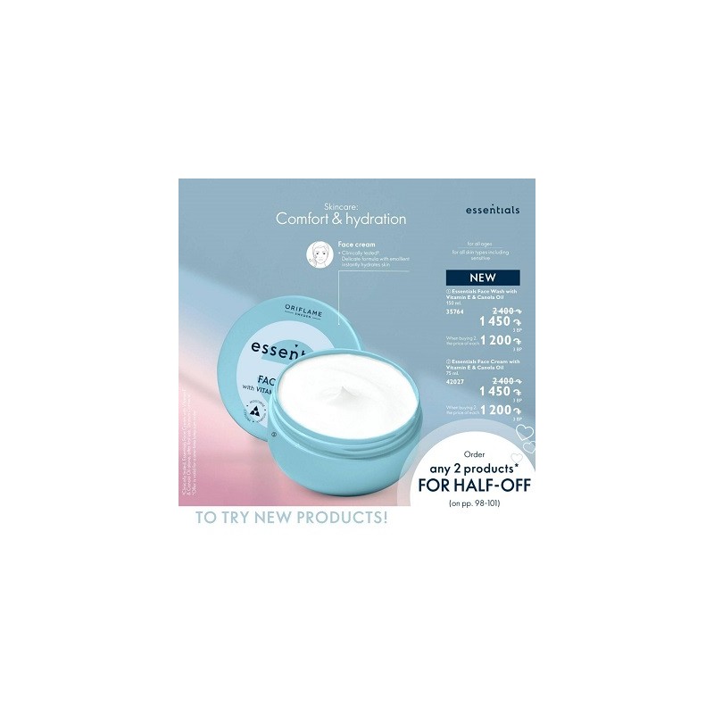 کرم صورت اسنشالز با ویتامین E و روغن کانولا