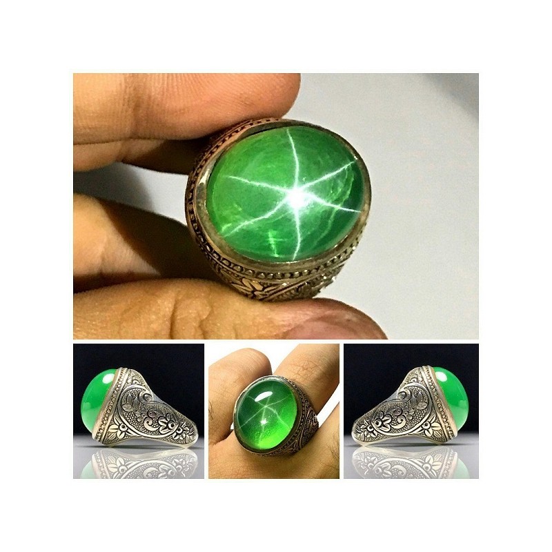 انگشتر یاقوت سبز ستاره ای