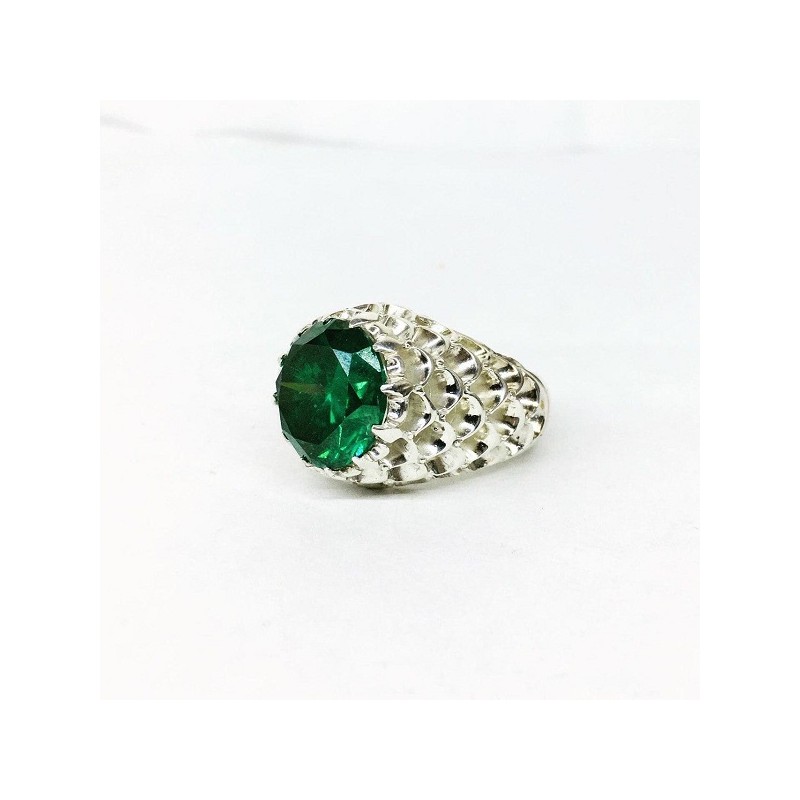 انگشتر موزونايت الماس روسي معدني و طبيعي با ركاب نقره پولكي بسيار پركار و سنگين مناسب براي افراد خاص