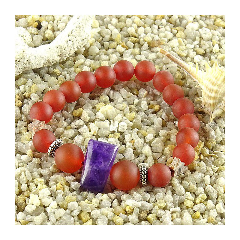 دستبند سنگ آمتیست،عقیق قرمز و جاسپر