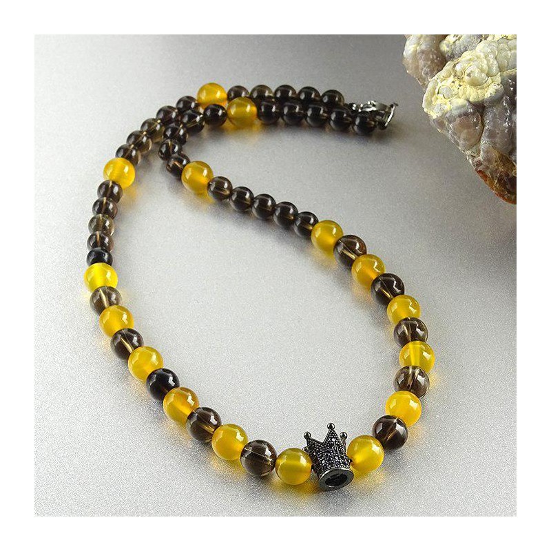 گردنبند سنگ عقیق زرد و کوارتز دودی