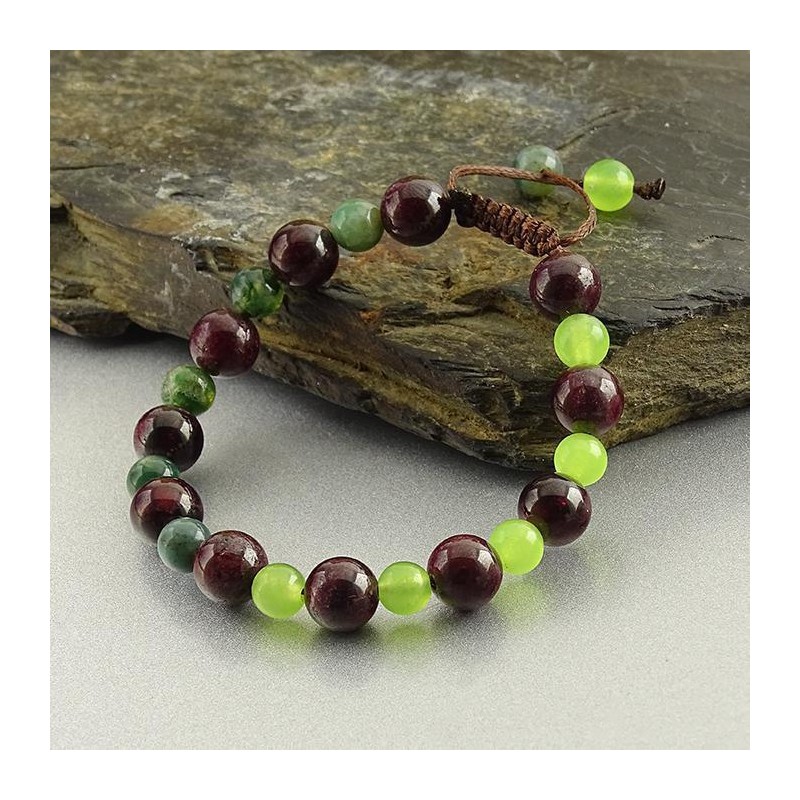 دستبند بافت سنگ گارنت،جیدشاه مقصود و عقیق خزه ای