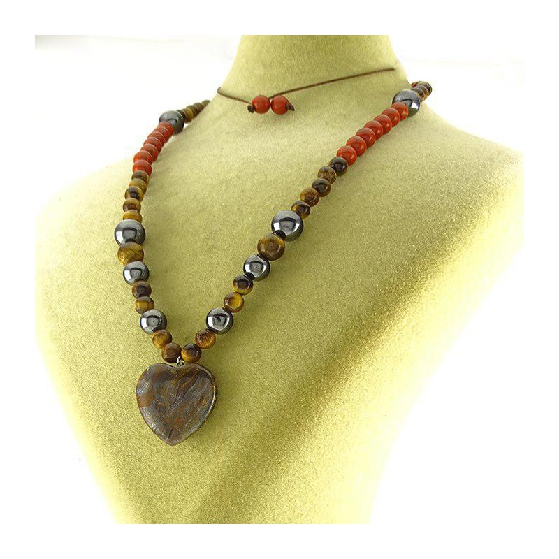 گردنبند بافت سنگ جاسپرقرمز،چشم ببر و حدید