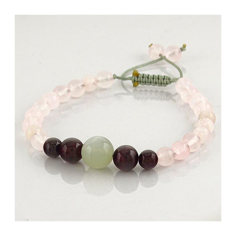 دستبند بافت سنگ رزکوارتز،گارنت و مون استون