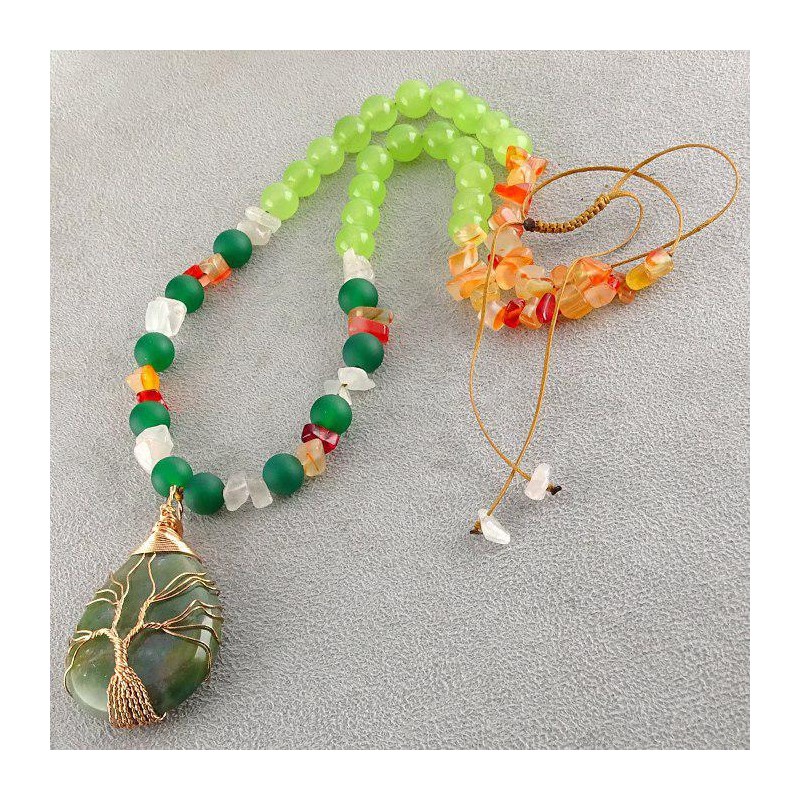 گردنبند بافت سنگ عقیق سبز،عقیق خزه و جیدشاه مقصود