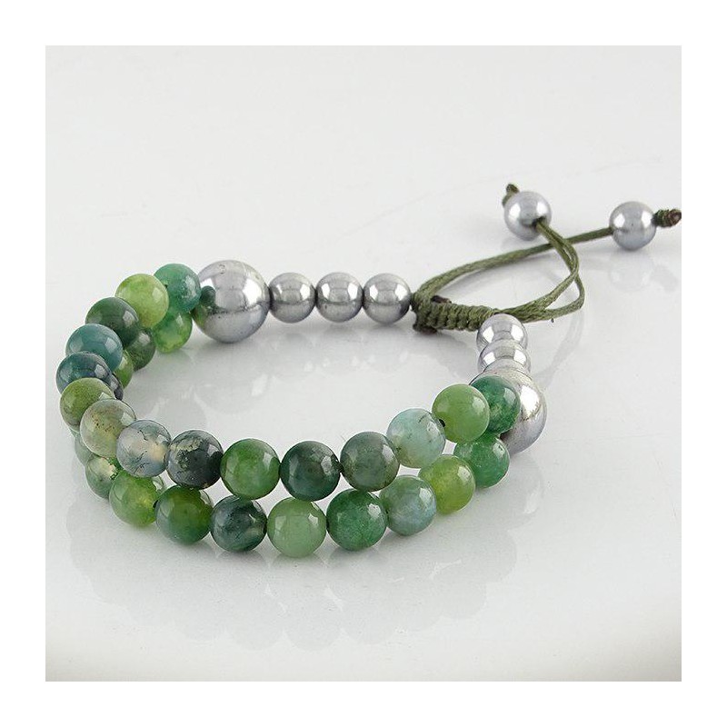دستبندبافت سنگ عقیق خزه ای و حدید