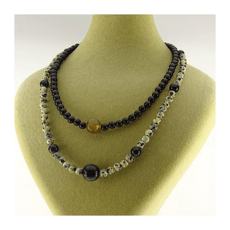 گردنبند سنگ دالماتیان و عقیق سیاه