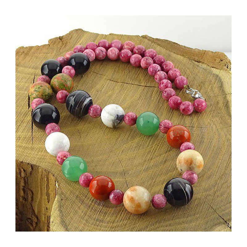 گردنبند سنگ رودونیت،عقیق سلیمانی،عقیق سیاه،هولیت،آونتورین،جاسپرقرمز،سان استون و اوناکیت