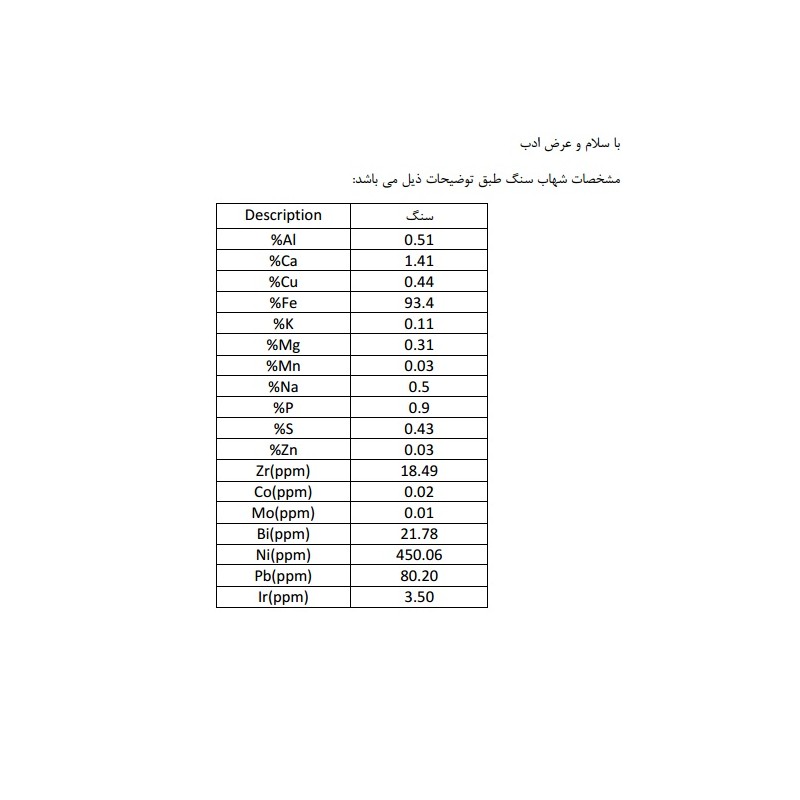 اندازه و ابعاد شهاب سنگ 70*67*40 میلیمتر