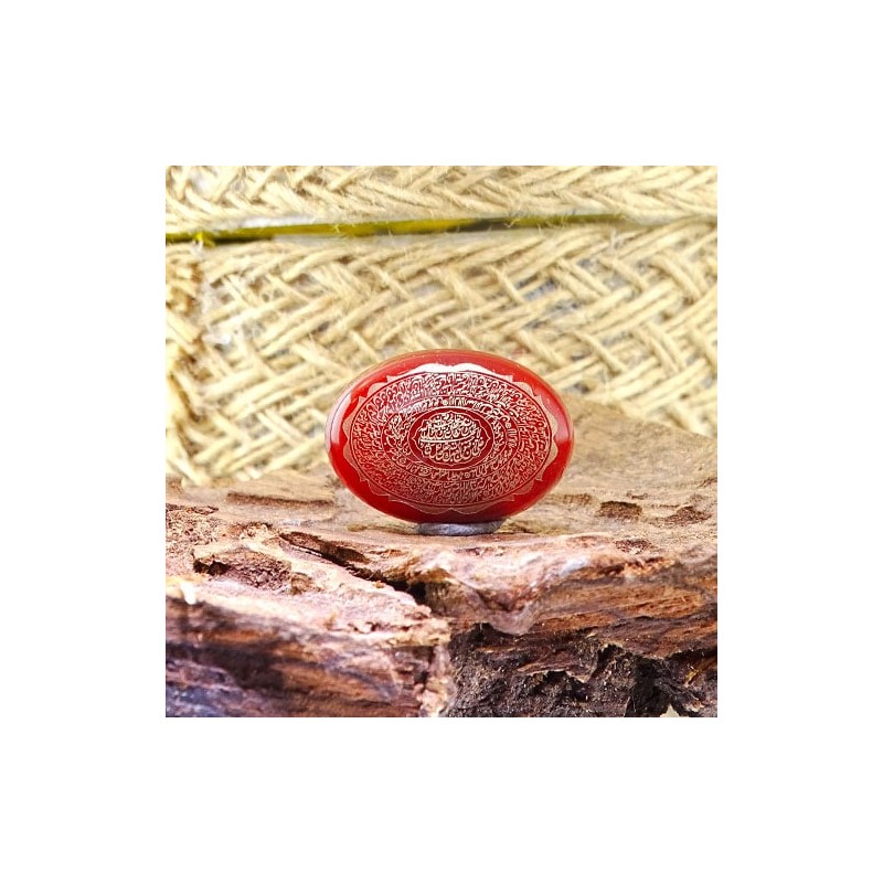 سنگ عقیق سرخ با حکاکی و من یتق الله، آیة الکرسی و ناد علی