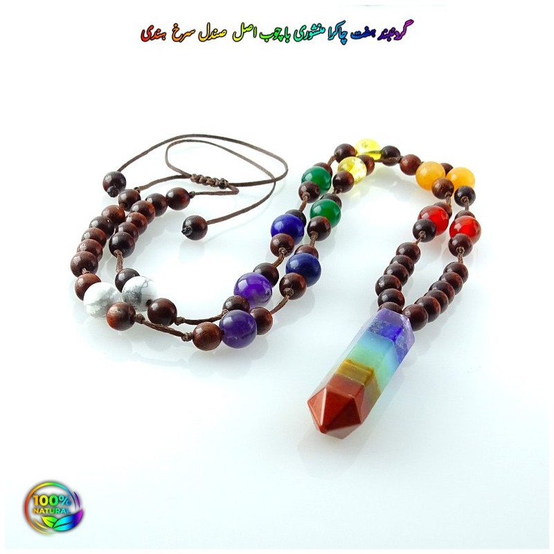 گردنبند هفت سنگ چاکرا منشوری و چوب صندل سرخ هندی معطر اصل